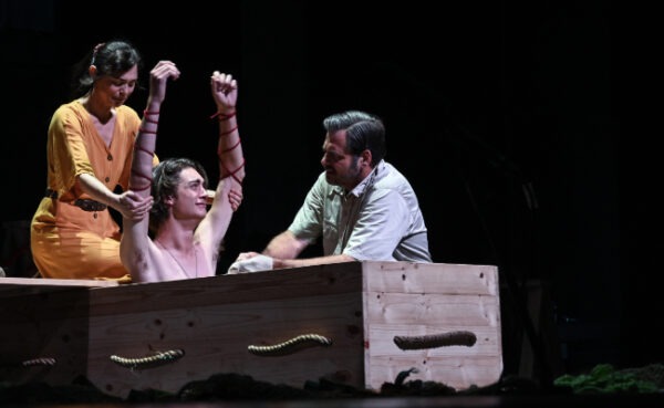 Die foto’s is van die verhoogproduksie wat by Toyota US Woordfees 2020 op die planke was en is nie van die Proscenium-verfilming in die Baxter nie. Dit was egter presies dieselfde spelers en stuk.