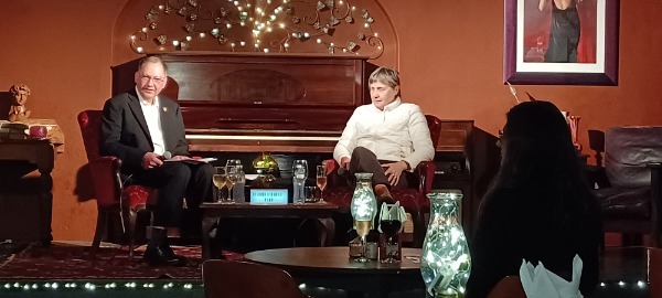 John Enslin en Marianne Kruger, wat die gesprek gelei het. (Foto: Jean Oosthuizen)