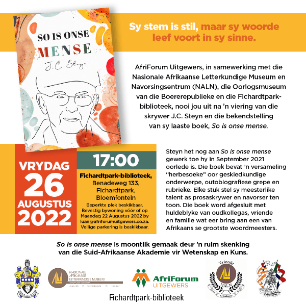 Uitnodiging: Boekbekendstelling – So is onse mense deur JC Steyn