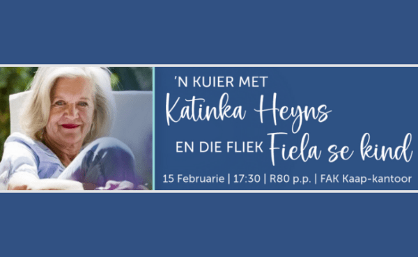 Uitnodiging: Kom kuier en fliek saam met Katinka Heyns op 15 Februarie by die FAK Kaap-kantoor