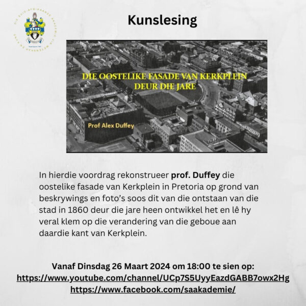 Al die vorige lesings van Alex Duffey is steeds op die bogenoemde twee platforms van die Akademie te sien.