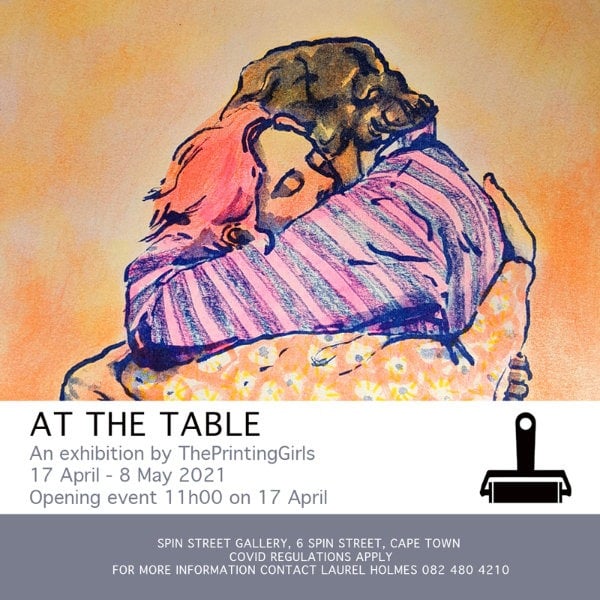 ThePrintingGirls is ’n kollektief van vrouedrukmakers (printmakers) met diverse belangstellings. At the table stal die werk uit van ThePrintingGirls wat in die Kaap woon. (Ander woon in ander stede.)