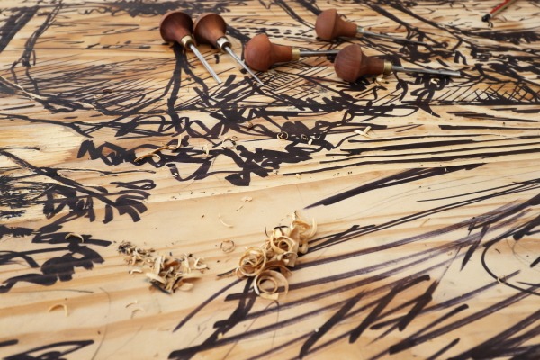Op 8 Mei gaan spesiale kunswerke gedruk word vanaf ’n druktafel wat gedurende die uitstalling kollektief deur ThePrintingGirls gekerf is. Dié druktafel is ’n ware tafel wat gekerf word tot druktafel.