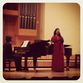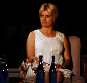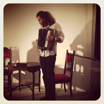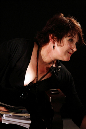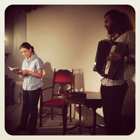 Luna Paige en Schalk Joubert op die verhoog tydens Luna se produksie, Storielied. |