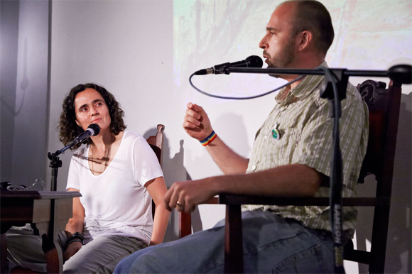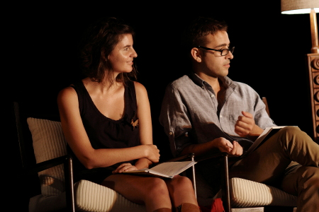 Pieter Odendaal en Annel Pieterse het saam vertaalde verse in Engels en Afrikaans gelyktydig voorgedra.