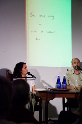 Riku Lätti begelei die digter Karen Kuhn tydens die bekendstelling van haar bundel ingeboek. |
