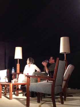 Kerneels Breytenbach en Melt Myburgh kuier aan tafel |