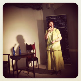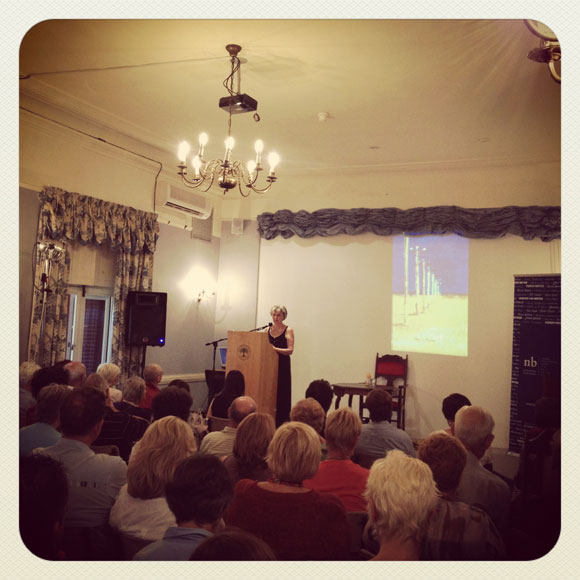 Petra Müller het uit haar bundel Gedigte rondom die gedagte van geel voorgelees vir ’n stampvol saal. Die bundel verskyn eersdaags by Tafelberg. |