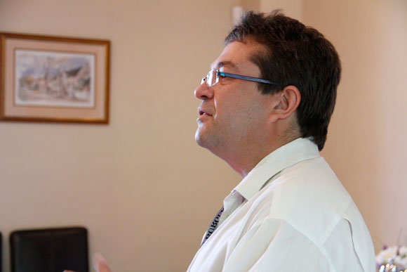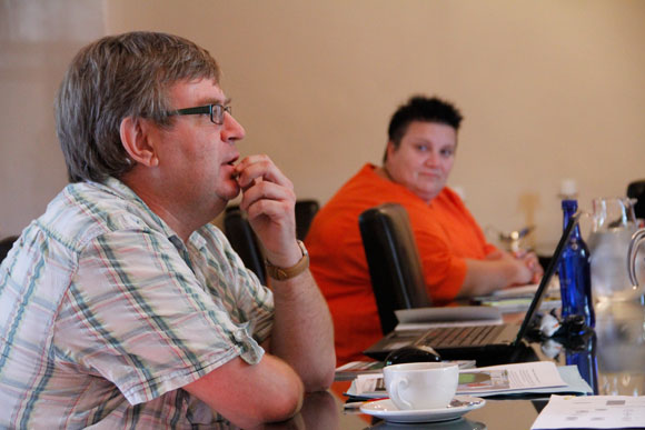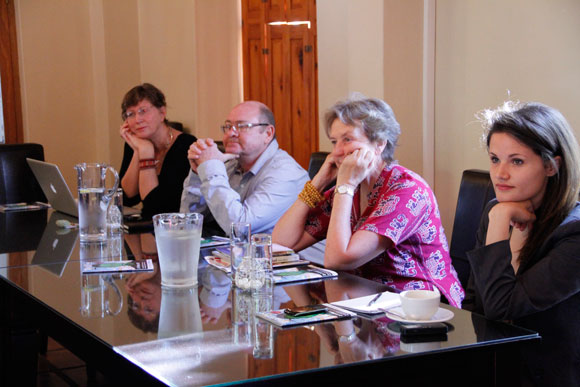Deelnemers: Willemien van der Wat, Derick van der Walt, Sarie Wessels en Roz de Waal luister aandagtig na Marius Crous. |