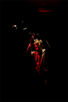 in het donker zit