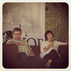 Marius Crous, aanbieder van LitNet en Sanlam se resensie-skryfskool, en Elmari Rautenbach, Media24 se nasionale boekredakteur