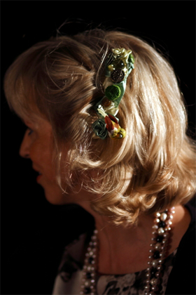 Erotiese kapitaal gaan oor meer as bene en borste, beweer Riette. Dit gaan ook oor voorkoms en besonderhede. Die blomme in Riette se hare pas spesifiek by Woordfees 2012 se Groen-tema.