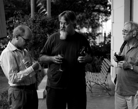 Desmond Painter, Alexander Strachan en SJ Naudé in gesprek voor die aanvang van die sessie |