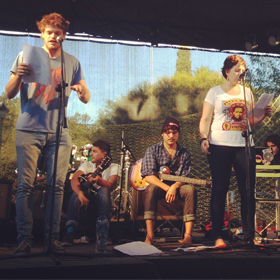 Lede van Bateleur op die verhoog tydens Transkripsie.