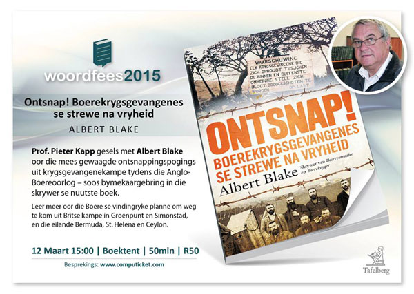 US Woordfees 2015: Albert Blake: Ontsnap! Boerekrysgevangenes se strewe na vryheid