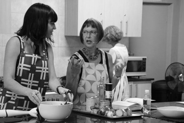 Na al die jare is SJA de Villiers se Kook & Geniet steeds ’n topverkoper en het dit ook ’n suksesvolle TV-reeks tot gevolg gehad. Tydens ’n kosdemonstrasie het Tannie Ina se dogter, Eunice van der Berg, en Lise Swart gewys hoe om onder andere gazpacho, risotto en vrugtekoek te maak. Die gehoor het aan hul lippe gehang (en natuurlik ook ’n happie gekry om te proe). Hier is ’n paar foto's van die geleentheid.