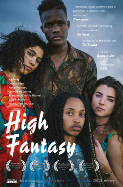 High Fantasy is ’n satiriese komedie oor ’n jong generasie se ontnugtering met die droom van ’n reënboognasie. ’n Multikurele Suid-Afrikaanse groep jong vriende kampeer in die afgeleë platteland en word een oggend wakker met die besef dat elkeen in ’n ander liggaan beland het. Hul ervaring van hierdie bisarre verwikkeling kan nie meer verskillend wees nie.