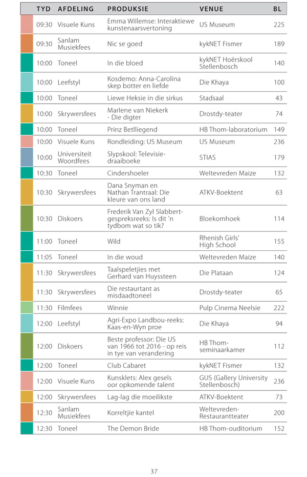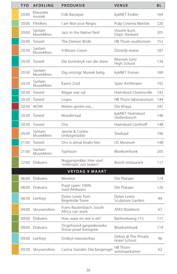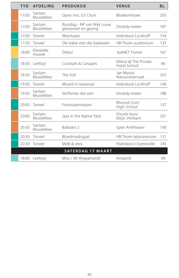 Die program is onderhewig aan verandering. Raadpleeg asseblief die US Woordfees se webwerf vir die finale program.