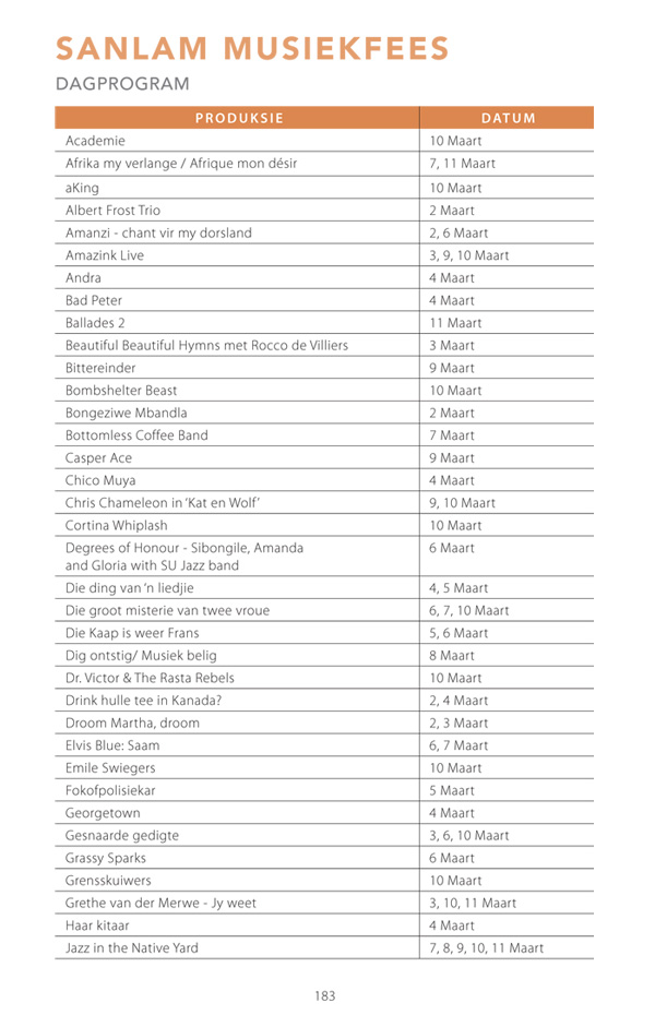 Die program is onderhewig aan verandering. Raadpleeg asseblief die US Woordfees se webwerf vir die finale program.