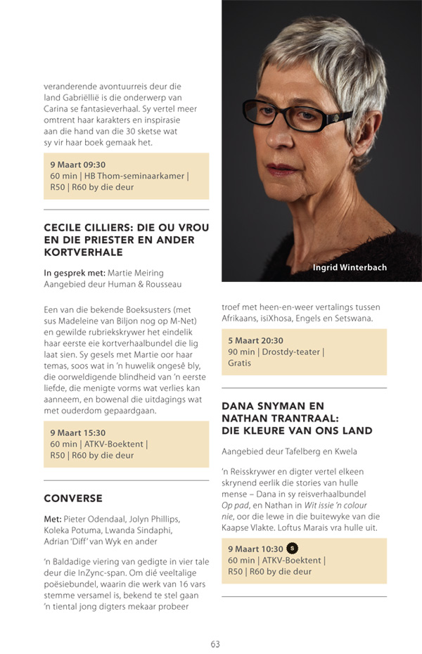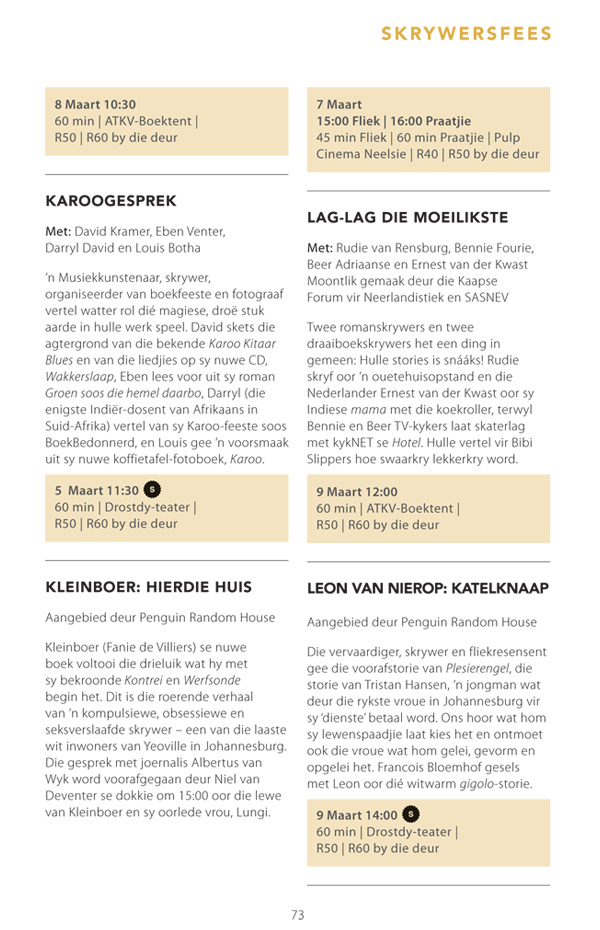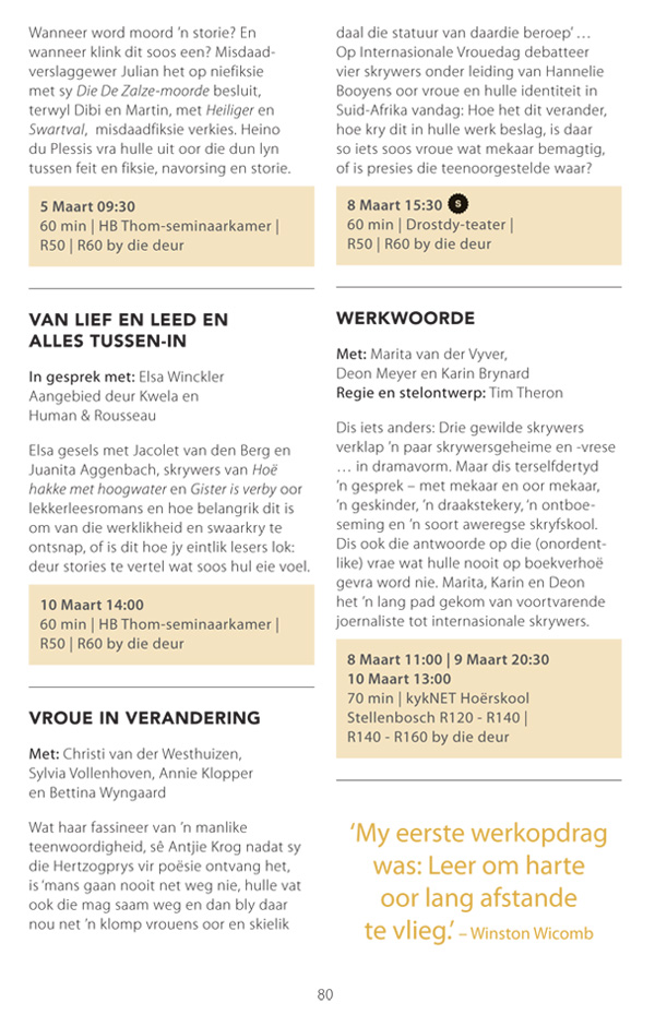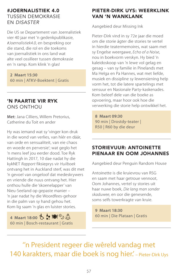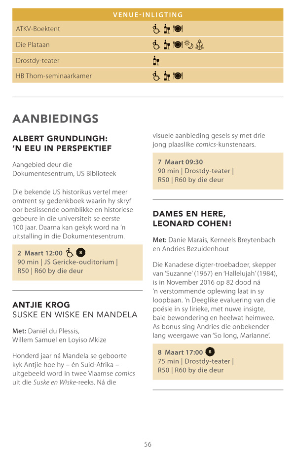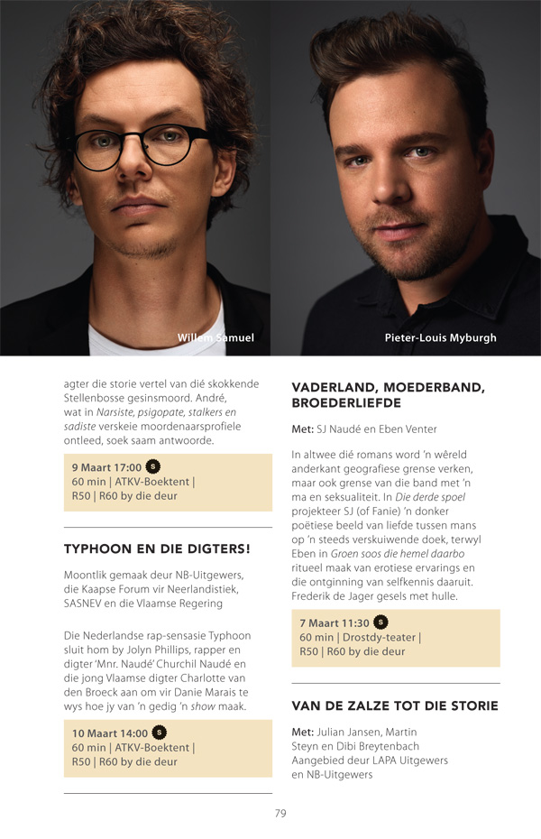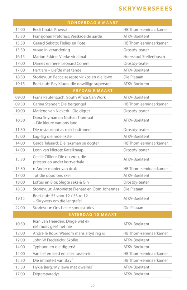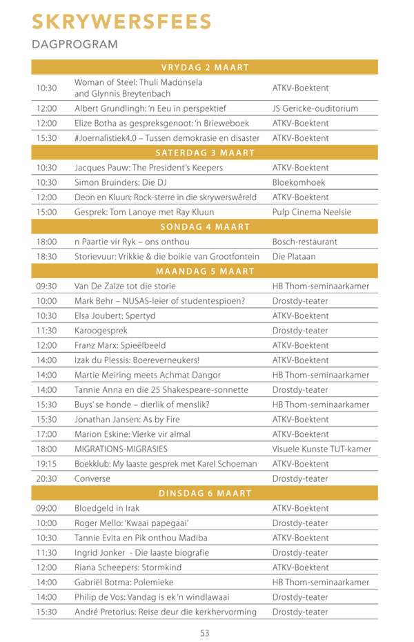 Die program is onderhewig aan verandering. Raadpleeg asseblief die US Woordfees se webwerf vir die finale program.