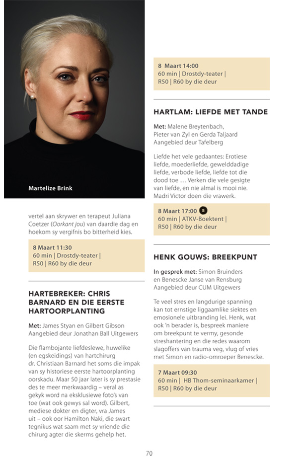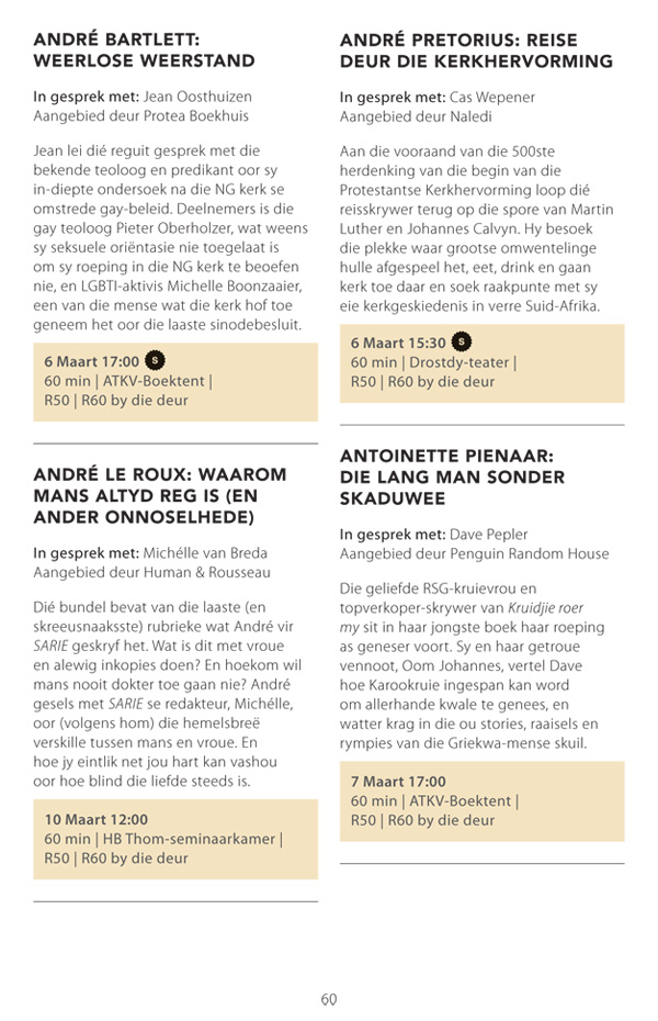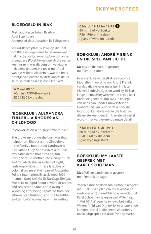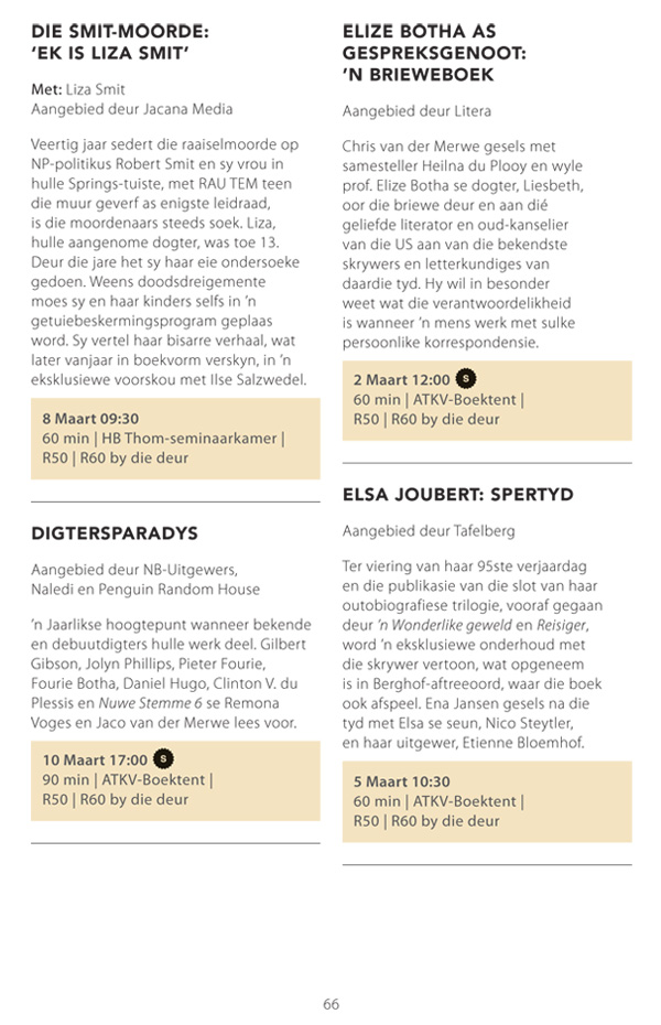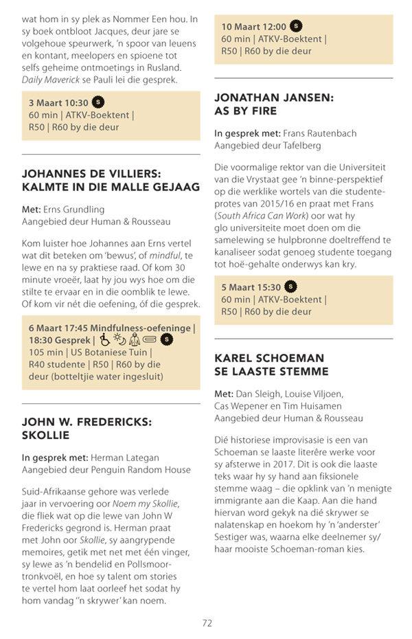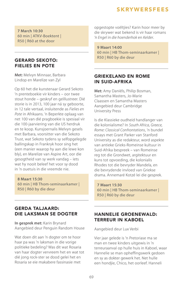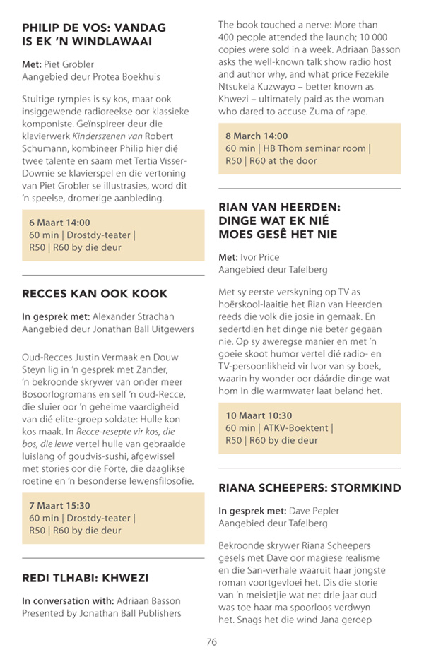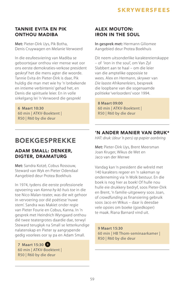 Die program is onderhewig aan verandering. Raadpleeg asseblief die US Woordfees se webwerf vir die finale program.