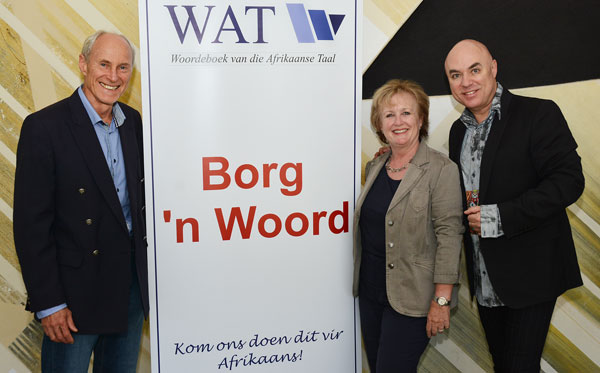 Nataniël is vanjaar die beskermheer van Borg 'n Woord en hy het tydens die Woordfees saam met Willem Botha en Erna Meaker, voorsitter van die WAT Trust, vir 'n foto geposeer.