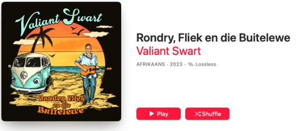 ’n Valiant is dit nou nie, maar tog is die slap wa gepaste dekor vir die aand: Dis die heel eerste bekendstellingsgeleentheid van die musikant Valiant Swart se nuutste album, Rondry, fliek en die buitelewe. Dit is deur Vonk Musiek uitgegee en is ook sy eerste sedert Nagrit in 2015.