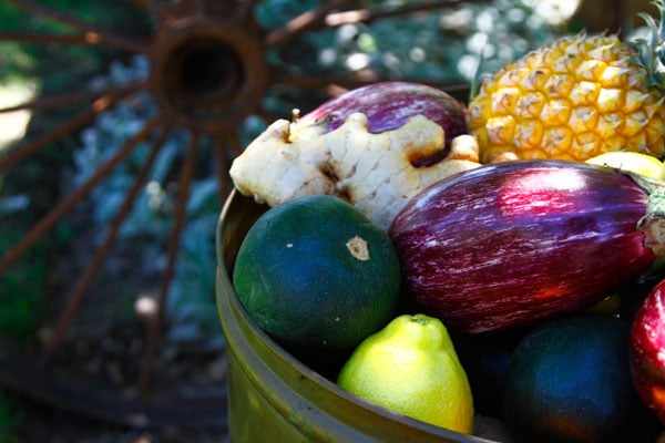 Reuben Riffel het op ’n dag vir Riana Scheepers gesê: “Om só te kan kook, is hemels.” Dít nadat sy vir hom die bestanddele vir die dag se ete uitgepak het: spinasieblare, tamaties, eiervrugte, appelliefies, vye, kruie, ’n mandjie skarreleiers, ’n skaapboud uit die Tankwa Karoo, ’n bottel rooiwyn. Alles het gekom uit haar tuin, haar kelder, haar weiland. Hierdie tema was Saterdag oral te sien. |