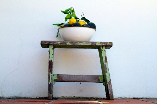 Ek kon nie anders as om hierdie stoeltjie raak te sien en af te neem nie. Dit is dieselfde stoeltjie wat vir die voorblad gebruik is. Alles in die boek is op Riana-hulle se plase afgeneem. Al die bakke, borde, koppies, kastrolle en glase behoort aan Riana en haar gesin. |