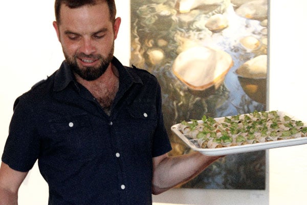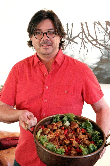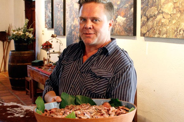Regtig, álmal het gehelp. Hier is Hendri Warricker, die uitgewer van Vallei van melk en heuning, besig om kos aan te dra. Hendri is self ’n wonderlike kok. Hy het die hele oggend vir Riana in die kombuis gehelp.
