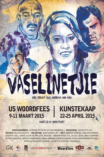 Geskryf deur Anoeschka von Meck. Teksverwerking deur Hugo Taljaard. Vervaardig deur Herman Pieters en Alma Rossouw. Onder regie van Shirley Ellis. Musiek deur Wilken Calitz en beligting deur Mari Borstlap. Aangebied vanaf 9 tot 11 Maart 2015 in die Hoërskool Stellenbosch-skoolsaal tydens die Universiteit Stellenbosch Woordfees.