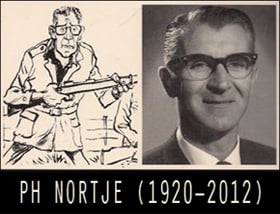 Dit is wat ek toe word op 1 Julie 1972. Ek maak kennis met Tafelberg se eerste hoofbestuurder, JD Pretorius, in wie se kantoor daar iets spesiaals te sien was. Bo-op die ry boekrakke staan daar ’n galery skrywersfoto’s. Dié wat ek onthou, is Berta Smit, Tonie Roux (albei ook Tafelberg-redakteurs), Hester Heese, WO Kühne, Alba Bouwer, Heinz Konsalik, FA Venter … en dan die man met die deftige kuif: PH Nortje. Hulle en ander was “oom JD se skrywers” wat hom sy uitgewery help vestig het. Hoe het hy nie agter PH aangery Wellington toe om sy eerste manuskripte te werf nie. Hoe het hy nie die Nortje-boeke as ‘t ware op ’n silwerbord ingedra by die Biblioteekdiens, Onderwysdepartement en die boekhandelaars nie. Hy’t Die Groen Ghoen vertaal gekry in Engels, Nederlands en Duits. Toe ons op ’n keer dag lank reklamestukke moes skryf vir byna elke boek op ons fondslys sodat die voorskryfkomitee van skoolboeke tog beïndruk kan word, kon ons verkondig dat PH Nortje se eerste twee jeugboeke gesamentlik in 1963 die (oom JD: “Skryf voluit!”) Scheepersprys vir Jeuglektuur van die Suid-Afrikaanse Akademie vir Wetenskap en Kuns ontvang het. Die wildedruif val verower in 1982 die eerste prys in Sarie en Tafelberg se jeugverhaalwedstryd, en Die elfde hekkie ontvang ’n ATKV-toekenning vir kinders 13-15 jaar in 1993.