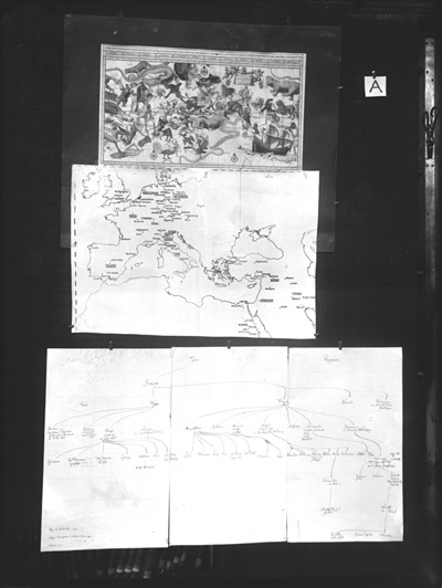 Figuur 10: Aby Warburg (1866–1929), Mnemosyne Atlas, Paneel A (1924–1929). http://warburg.sas.ac.uk/collections/warburg-institute-archive/bilderatlas-mnemosyne/mnemosyne-atlas-october-1929 (13 Mei 2015 geraadpleeg).