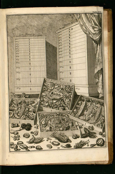 Die ruimte van Wunderkammern was dikwels eng met studie en bepeinsing vervleg en die kamers of kabinette daarin was telkens die gevolg van ’n idiosinkratiese versamelaar se obsessiewe moeite, soos ook in die geval van die argiewe wat hier ondersoek word. Dit was telkens ’n uitdrukking van ’n individuele versamelaar se smaak, passie, belangstelling, lewensweg en roem. Die ruimtes getuig van ’n menslike passie of begeerte vir kennis en is veronderstel om die betragter se gees ontvanklik te maak vir die wonders van die wêreld, maar ook om verdere studie en nadenke van horison tot horison aan te moedig (Crane 2000:65–8). Die objekte in die Wunderkammern het as gesprekstukke gedien vir die deelname aan intellektuele diskoerse en het die uitruil van en verbandlegging tussen wyshede aangemoedig. In die 18de-eeuse illustrasie Bezoekers in het natuurhistorisch kabinet van Levinus Vincent in Haarlem (figuur 3) (die titelblad van die geïllustreerde inventaris, Wondertoneel der natuur, ofte een korte beschrijvinge zo van bloedelooze, zwemmende, vliegende, kruipende, en viervoetige geklaauwde eijerleggende dieren bevat in de Kabinetten van Levinus Vincent [Boek I, Amsterdam, 1706]) neem die betragter ’n toneel waar waarin die oorgang vanaf die humanistiese geleerdheid van die Renaissance na die begin van die Aufklärung sigbaar is. Hier is ’n uitbeelding van ’n vakwetenskaplike ruimte waarin sistematiek en klassifikasie belangrik is, soos wat in die uiters geordende tentoonstelling van Vincent se wonders in laaie en op rakke gesien kan word. Besoekers wou aan hierdie instelling van ’n elite-kultuur van geleerdheid deelneem. Die voorgestelde kabinetruimte vertoon pare en groepe besoekers wat tot lering en vermaak met hulle aandagtige houdings en beduiende vingers aan gesprekke en debatte rondom objekte in die laaie, op die tafels en in die uitstallings teen die mure deelneem. Dit was die aard van hierdie versamelings wat hierdie tipe sosiaal-intellektuele gedrag by besoekers aangemoedig het en dit het regdeur die geskiedenis ’n eienskap van kreatiewe versamelings gebly. Dit is dan ook die geval, by dié versamelings van Aby Warburg en Willem Boshoff, waar besoekers se interpretasie van die ordenende begrippe onderliggend aan hulle versamelings tot die intellektuele diskoerse bydra.