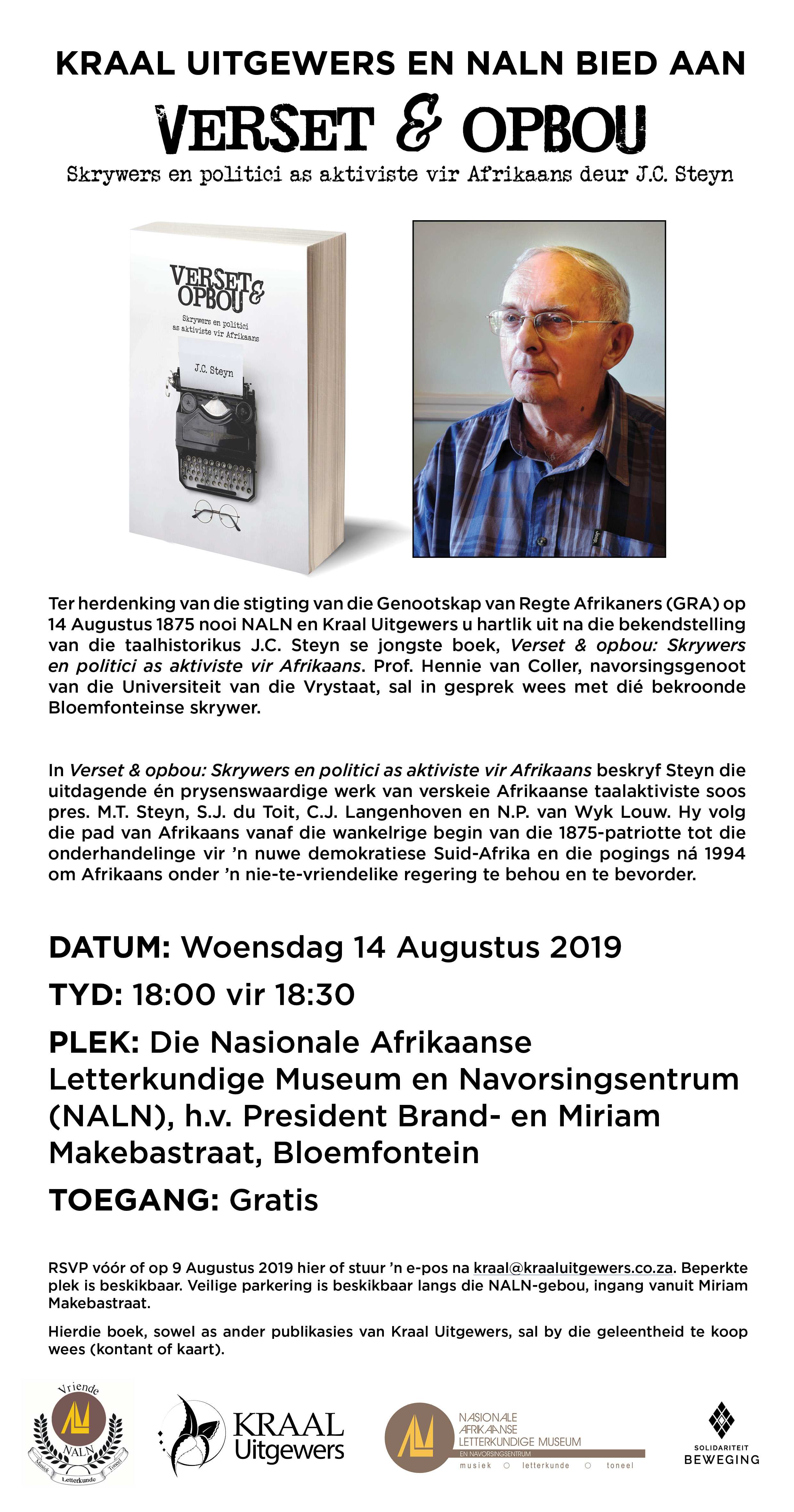 Verset & opbou: Skrywers en politici as aktiviste vir Afrikaans deur JC Steyn
