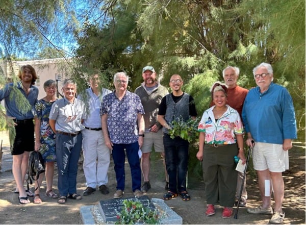 Bernard Odendaal het pas ’n krans by die graf van W.E.G. Louw gelê nadat hy ’n gepaste huldeblyk gelewer het.