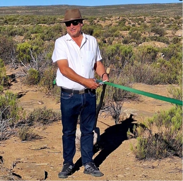 Uli Gernstholtz knip die groen lint om die voetpad offisieël te open. Uli het baie tyd in die beplanning en voorbereiding van hierdie projek gesit.