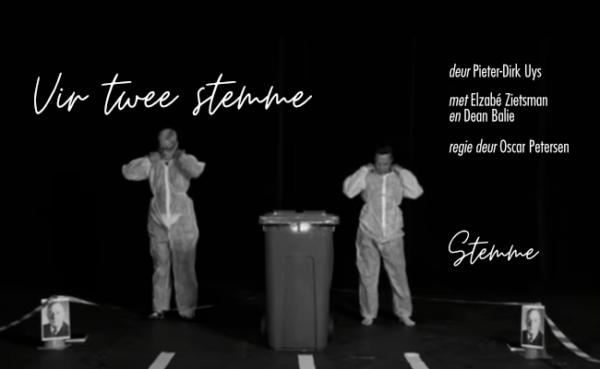 Vir Stemme, LitNet se dialoogprojek saam met die Suidoosterfees, NATi en die ATKV, is tien dramaturge genader om kort dialoë te skryf. Twintig akteurs is gevra om daarin te speel en tien regisseurs het elkeen ’n stuk afgerond. In Pieter-Dirk Uys se dialoog Vir twee stemme vertolk Elzabé Zietsman en Dean Balie die rolle. Oscar Petersen was in die regisseurstoel.