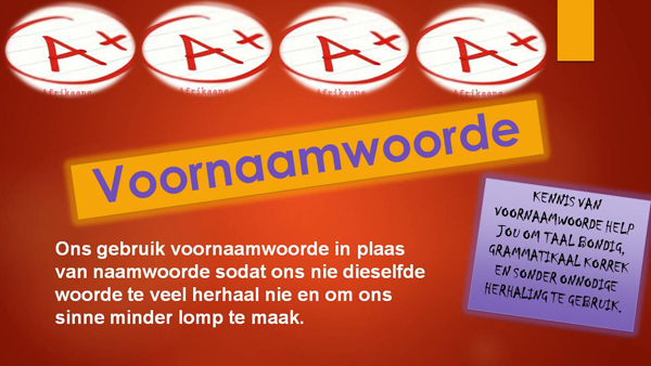 Baie dankie vir die. Ek is tans besig om op my "heuglike" ouderdom van 36 my graad 12 te doen en dit help my baie aangesien die kennis al verroes is. Is daar nog van die ander ook?
