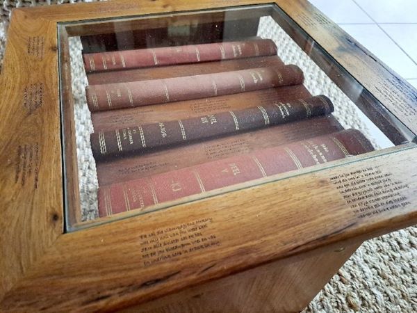 Die kiaattafeltjie met twee lang boute deur gate – geboor deur die vier ou Afrikaanse woordeboeke (foto’s: verskaf)