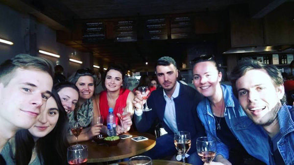 Die Suid-Afrikaners op café met studente uit Duitsland, Pole en België