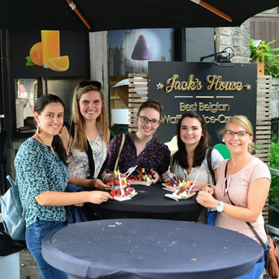 Eet smaaklijk! Anja, Janet en Yolanda geniet regte Belgiese wafels