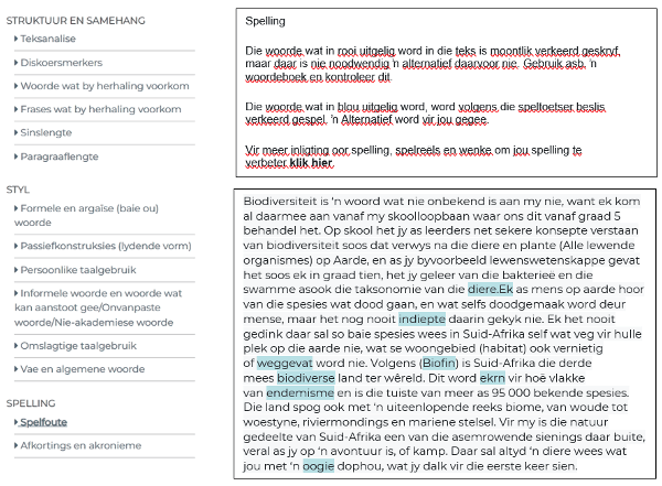 - Die Skryfhulp help jou om die interne koherensie van jou teks na te gaan: