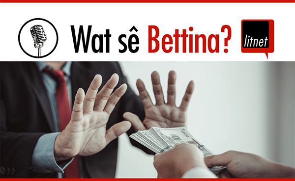 Ek probeer nog steeds, soos sekerlik die meeste ander Daily Maverick-lesers, die denke agter Tebogo Malaka se optrede verstaan. Was sy so desperaat omdat sy alreeds geskors was dat sy gedink het dit maak nie saak wat sy doen nie? Maar dit kan nie wees nie, want die aanloop en toenadering het begin voor sy geskors was, toe sy nog onder die indruk was haar posisie is veilig en sy kan die beloftes uitvoer wat sy maak. Of is omkopery al so deel van besigheid doen dat die idee van ’n onkreukbare karakter nie eens deel van die sommetjie was wat sy gemaak het nie?