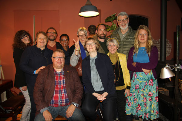 Die groep skrywers by die Stedelijk museum in Amsterdam