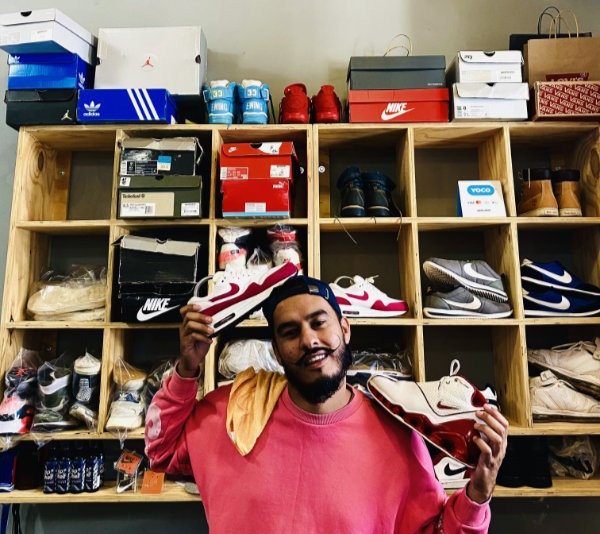 “Once the lockdown restrictions decreased, more people could leave their homes and their sneakers became dirtier. I began riding that wave by cleaning 20 pairs of sneakers a week. One day, a friend, Abdul Raaziq (someone I had supplied Jula Vape juice to), asked if I would be interested in taking space in his vape lounge. I was grateful that I had once helped him on his business journey, because then he gave me that same opportunity. By collaborating within retail space and sharing ideas, together we could bring more people into the store, with both businesses thriving – if you kyk (help) with me, I kyk (help) with you. His vape customers become my sneaker cleaning customers, and vice versa – surprisingly, the concept of a vape lounge and sneaker cleaning came together.”