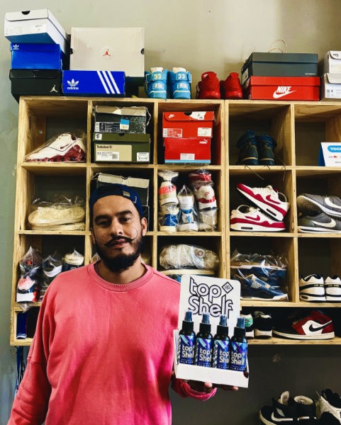 “Back in 2017, between learning about more vape ingredients and chemicals, I got the idea to create cleaning agents specially for cleaning shoes. Fast-forward to a few years later, during the COVID-19 lockdown, I continued to pick up the samples that I’d created back then, and decided to improve the recipe to launch an eco-friendly sneaker cleaner. With the knowledge I had from creating my Jula Vape juice, I began to perfect the sneaker cleaner recipe. Initially, the product was too harsh, due to the bleach component. I adjusted the ratios. With many doubts and hopes, I took my recipe to an ISO 7 lab, and they were impressed with the idea. After 11 trials, my research on the ingredients became foolproof, and the final product for TopShelf Sneaker Cleaner was created.
