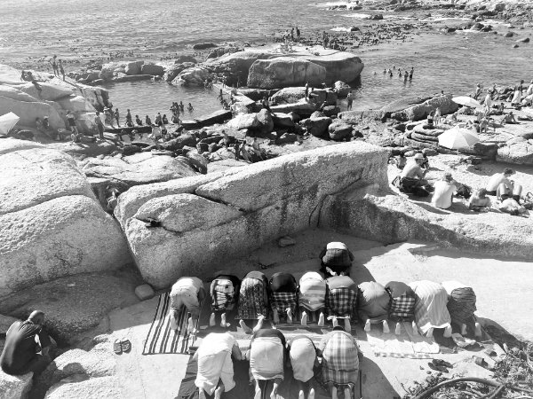 “There is a time for everything, Zubayr,” says Uncle Abdurraheem after returning from the ocean, as he reminds me that it is time to pray. “We have fun here, but we cannot forget about our creator. Look, the uncles sometimes sing or play klawerjas, but, first and foremost, wherever we are, we need to be practical Muslims. We must practise our deen (religion) in all circumstances.” Uncle Abdurraheem and I depart, with him walking up towards the section of the beach that resembles mountainous rocks – there is a concrete floored section, just before the large rocks, where the men perform their salaah.