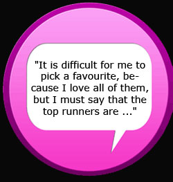 Click on the purple speech bubbles below to download each speaker's favourite. Read the full comment at the bottom of the download page. Klik op die pers praatborrels hieronder om elkeen se gunsteling te download. Lees die volledige kommentaar onderaan elke download-bladsy.