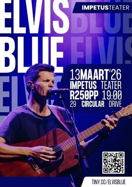 Elvis Blue is op pad na die Impetus-teater in Gqeberha. Op 13 Maart 2026 om 19:00 sal die Baai hom kan sien en hoor.